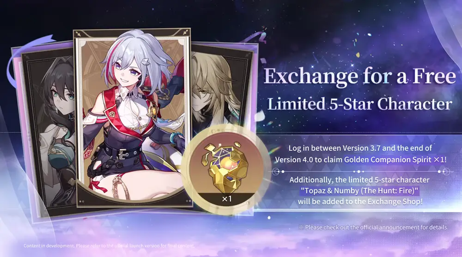 Logging in between version 3.7 and 4.0 grants players a special reward: a golden companion spirit that can be redeemed for a 5-star character in the in-game shop.